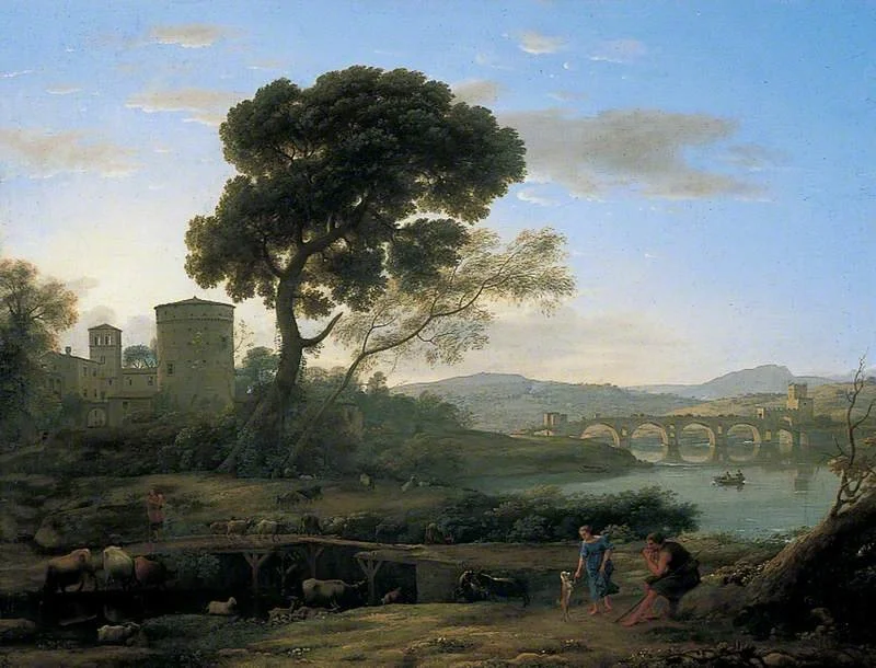 Landscape near Rome with a view of the Ponte Molle, Claude Lorrain, 1645 (detail)